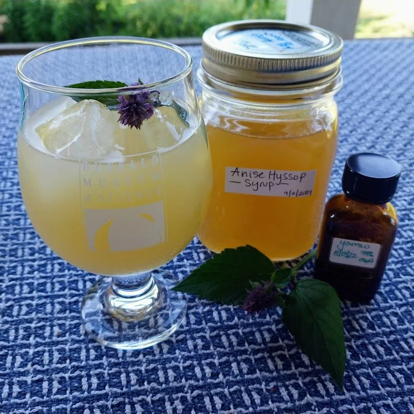 Anise hyssop syrup in an Anise Hyssop + Yarrow Gimlet (featured in Native Culinary Herbs: Online Gardening Course)